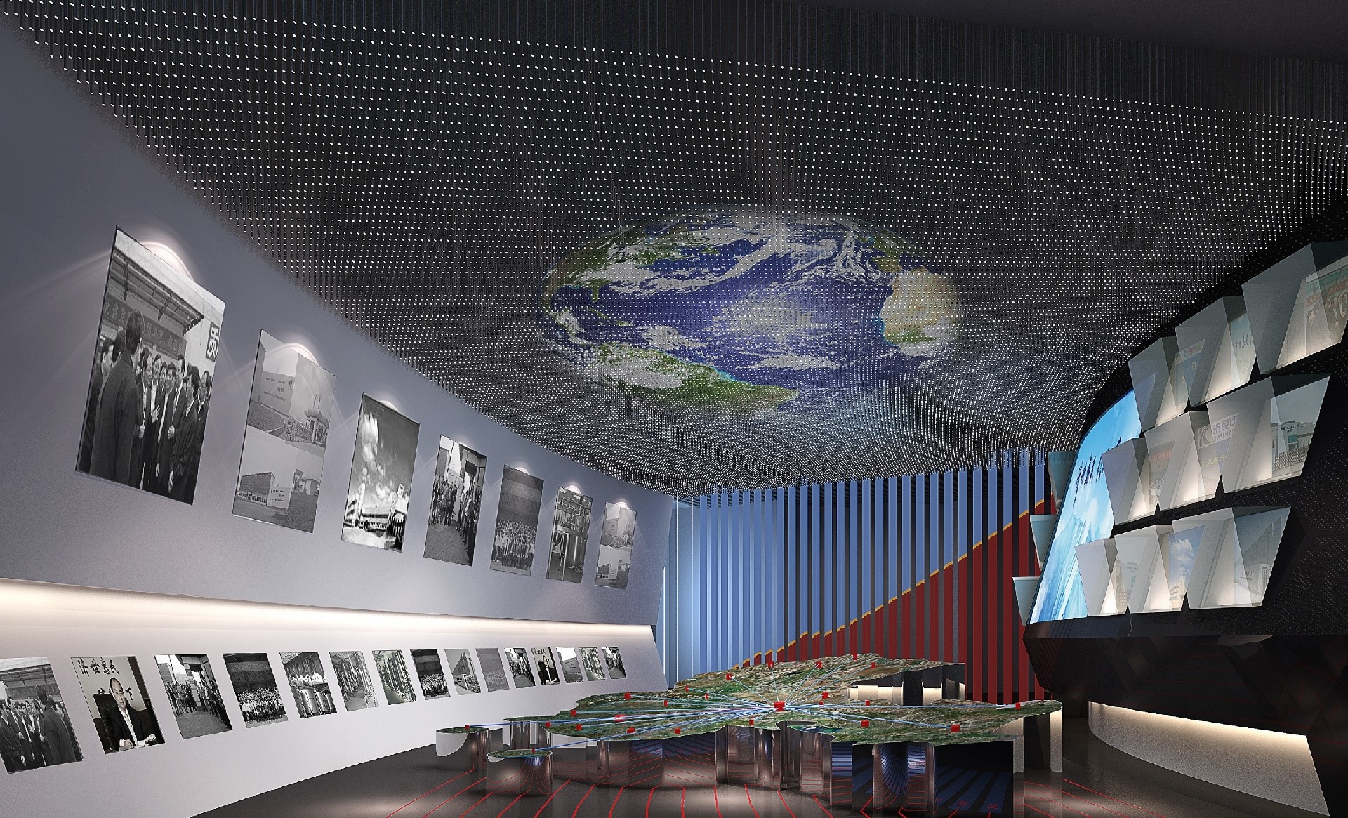 科技展廳設(shè)計以科技元素和燈光布局主導(dǎo)基調(diào)來開展自然環(huán)境氣氛渲染,根據(jù)封閉式的室內(nèi)空間來開展呈現(xiàn),展現(xiàn)出一個神秘含有科技感的企業(yè)形象,表達出科技感展廳設(shè)計的特色以及韻味。北京展廳設(shè)計公司根據(jù)場景的修飾,游戲道具的進行,給觀看者來--場新科技的體驗之行。北京展廳設(shè)計公司采用了一種封閉式的室內(nèi)空間構(gòu)造模式,呈現(xiàn)現(xiàn)代新科技,自然環(huán)境的氣氛更現(xiàn)代化,在以科技藍主導(dǎo)色的前提下,加以若隱若現(xiàn)的燈光來突顯其新鮮感,給觀看者帶來更強的科技體感互動感。